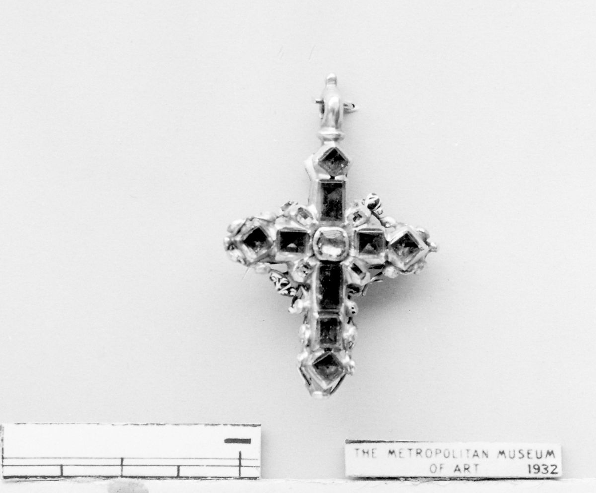 Even in this portrait, this woman obeys the sumptuary laws because women were only allowed to wear more than one necklace if one was a cross or rosary. This led to more and more elaborate crosses, encrusted with jewels and enamels as well-off women made an attempt to stretch the laws and outdo their neighbours.